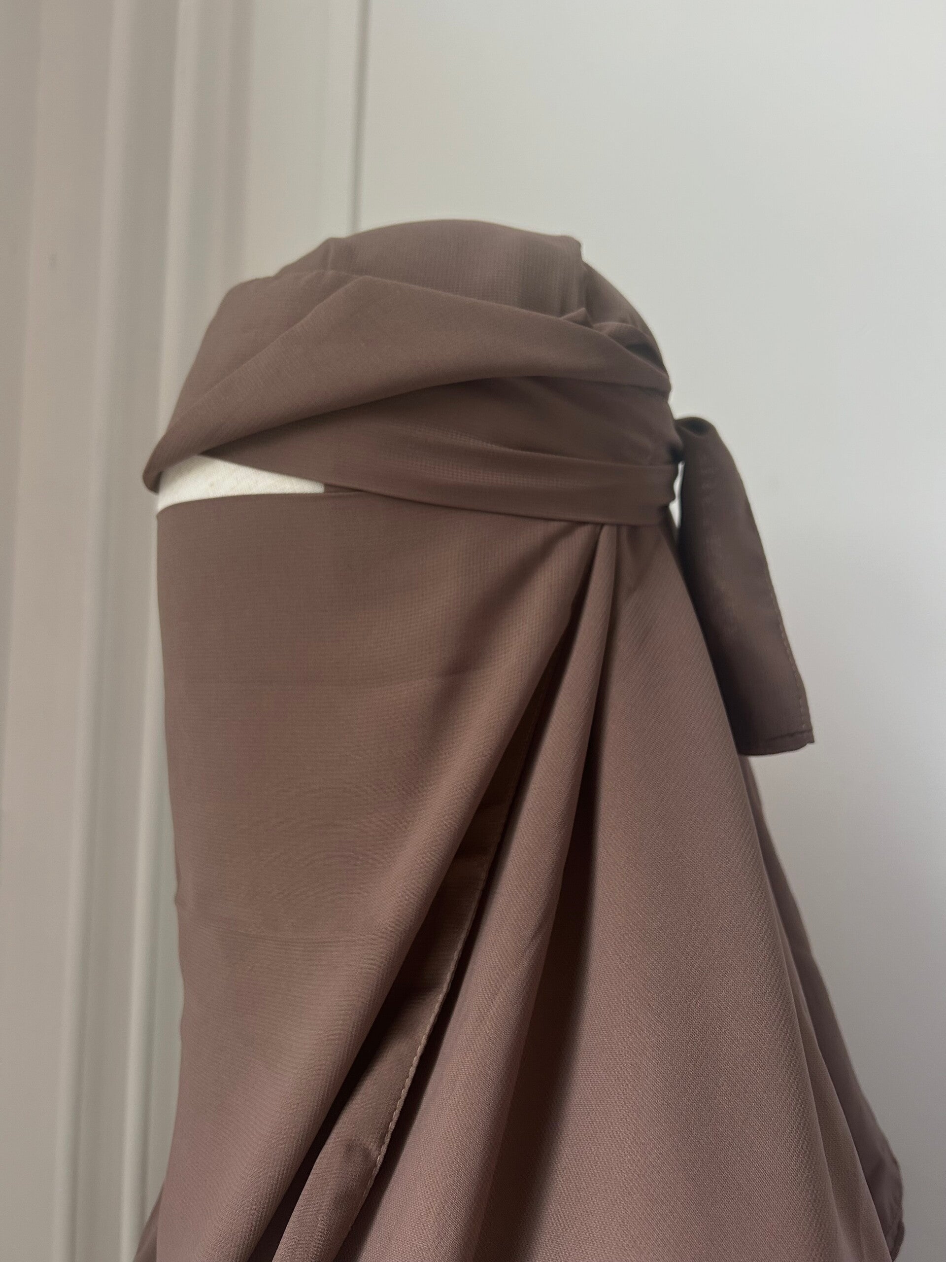 Gemaakt van hoogwaardig Saudi Chiffon: heerlijk licht, luchtig en comfortabel ☁️. De niqab heeft een ruime oogopening en een handige flap die je eenvoudig naar achteren kunt dragen wanneer je daar even geen behoefte aan hebt 💫